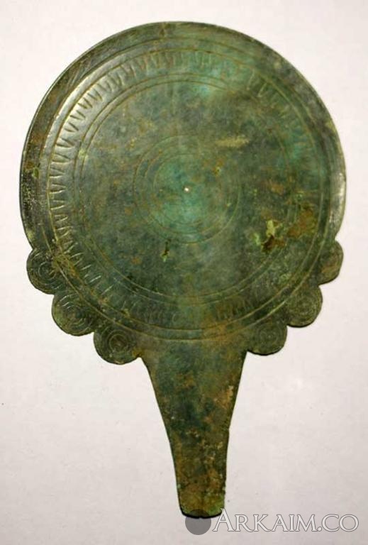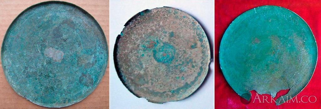 К этому типу зеркал можно еще добавить дисковидные зеркала с боковой ручкой и невысоким бортиком-закраиной, с полукруглыми выступами-фестонами в нижней части диска , часто украшенными гравированным орнаментом (фото). Оба этих вида идут параллельно по датировке и из одного и того же региона. Вот и получается - миоты! Две статьи о таких зеркалах я привел, и мой поиск еще не закончен. :)