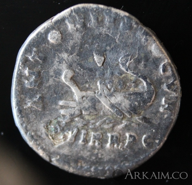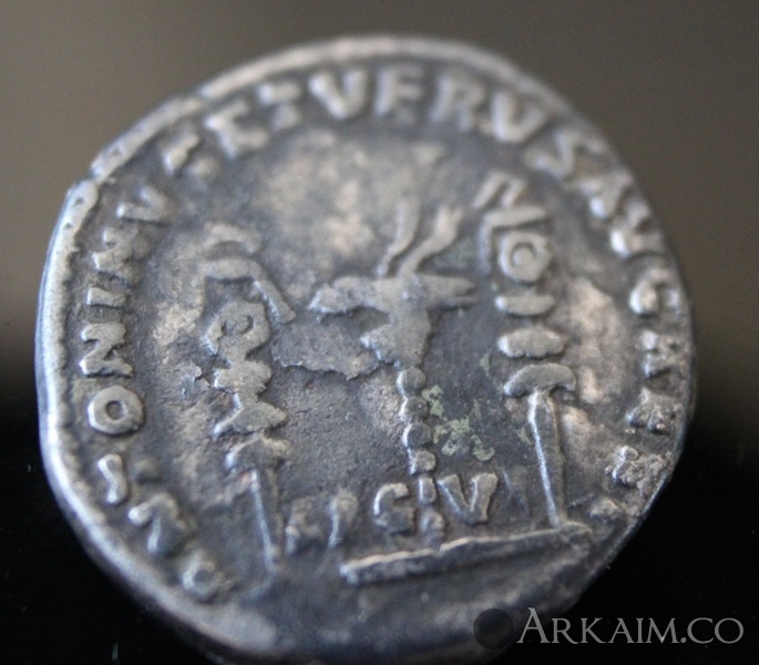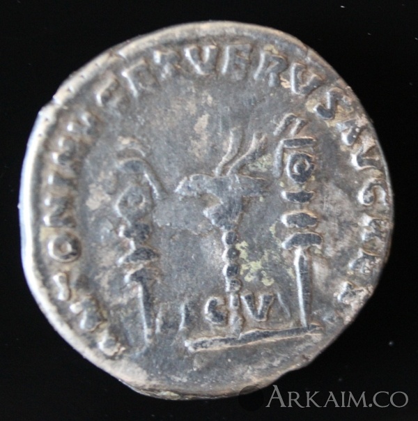 11. Поискал и нашёл,что монета не простая а Марк Аврелий и Люций Вер 16.jpg Аверс - ANTONIVS AVGVR III VIR R P C / галера. Реверс - ANTONINVS ET VERVS AVG REST / LEG VI/ два сигнума и аквила между ними. Денарий отчеканен в честь 6 легиона и повторяет денарии Марка Антония. видимо монета подобная у нас не проходила.Просто попали видимо на место где стоял легион римский.Много редких там находок и монет римской империи Прошу высказать все ваши версии.Монета специально не чистилась,только ополоснули водой
