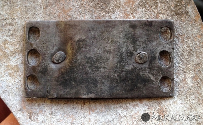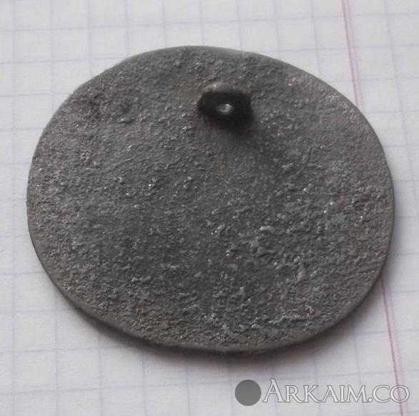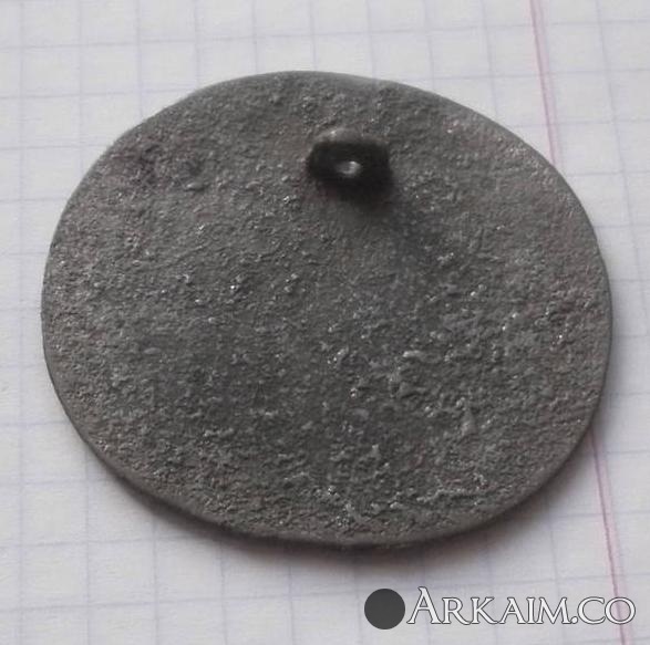 Интересный предмет. Если убрать ушко, то явно конский ременной распределитель, а убрать все отверстия для ремней (собственнно убрать признаки распределителя) получиться зеркальце! Видны следы от ремней, от использования в качестве распределителя. Чудная вещица и по всей видимости она так и была задумана при изготовлении.