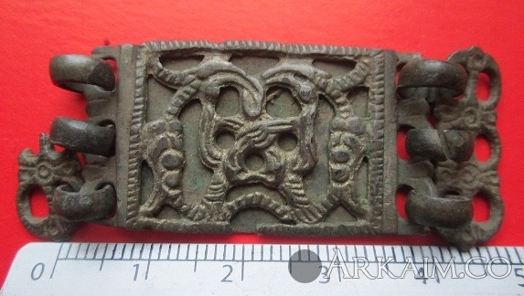 Спасибо! Мне пообещали прислать фото целого браслета, коллега продал его на Виолити года два назад, а фото остались. А на Домонголе коллеги добавили в тему фото и описание - Немножко скорректирую. Это безусловно звено женского пояса. Но датировка сильно занижена. Такие датированы 18-19 веком. Иногда датируют 17-м но это пока ничем не обосновано. Вот из собрания Государственного исторического музея. Вторая половина XVIII в