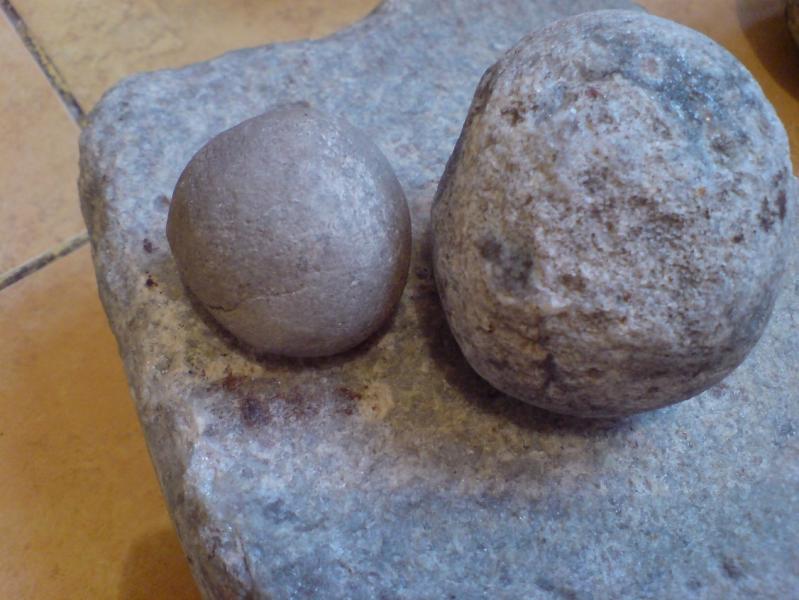 Да нет, при чем тут терочники. То ж совсем другое. И форма и размер и материалл. Терочники делали как правило из кварцита и использовали соответственно, что бы чтото тереть, травы разные ароматные растирать, скифские женщины натирались такой смесью, через сутки снимали эту "мазь", тело становилось чистым, глянцевым и приятно пахло. Мне попался однажды большой плоский камень со следами от трения, он служил как поверхность для растерания. Я предполагаю, что может это какието не стандартные камни для пращи, но маловероятно, те совсем иные... Шары про которые я спрашиваю всегда имеют только круглую форму, всегда гладкие и глянцевые и размером больше монеты в 1гривну не попадаються.