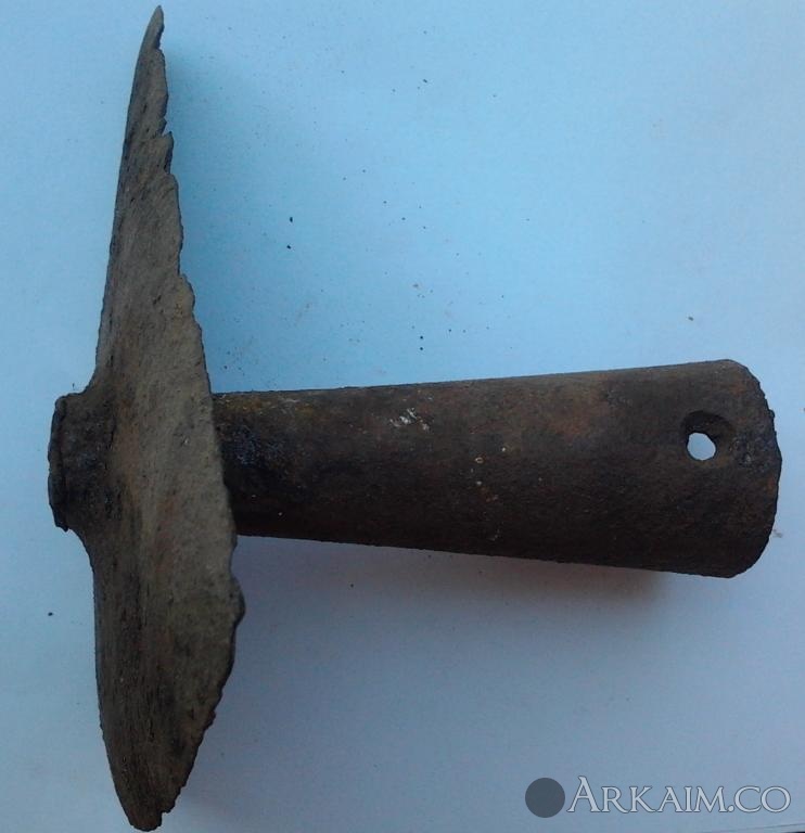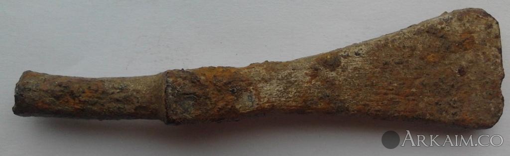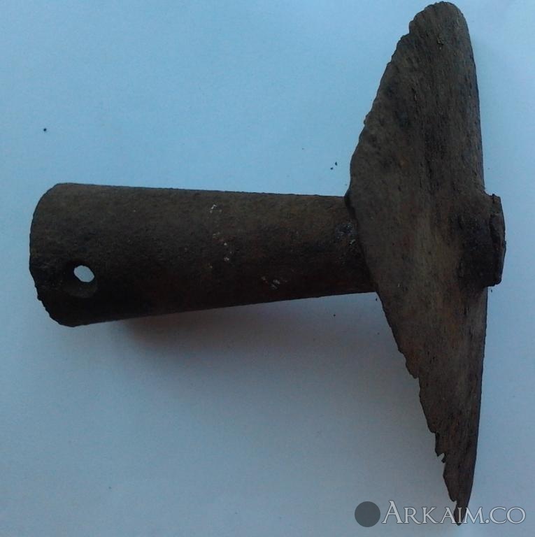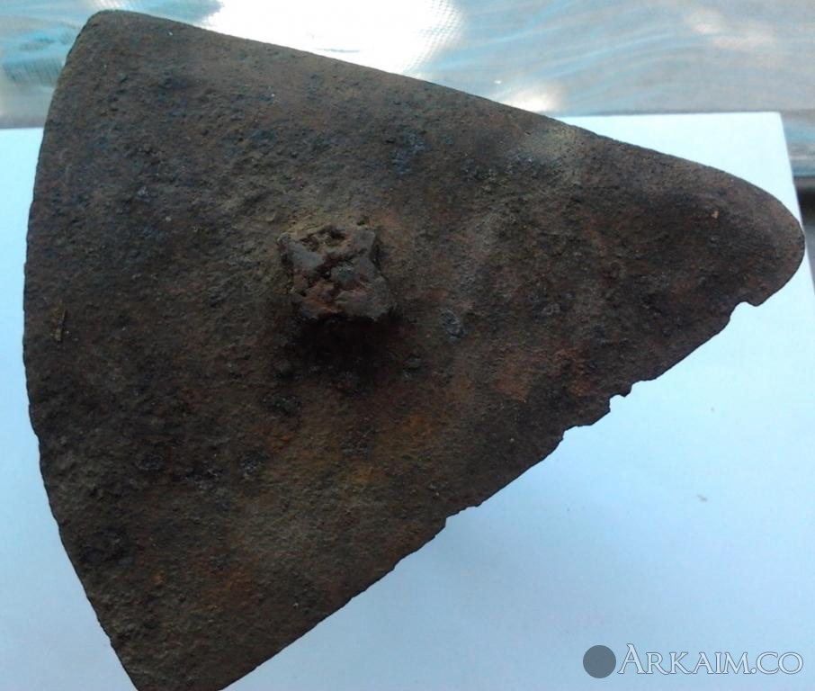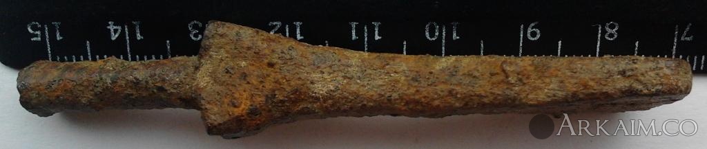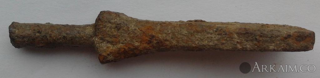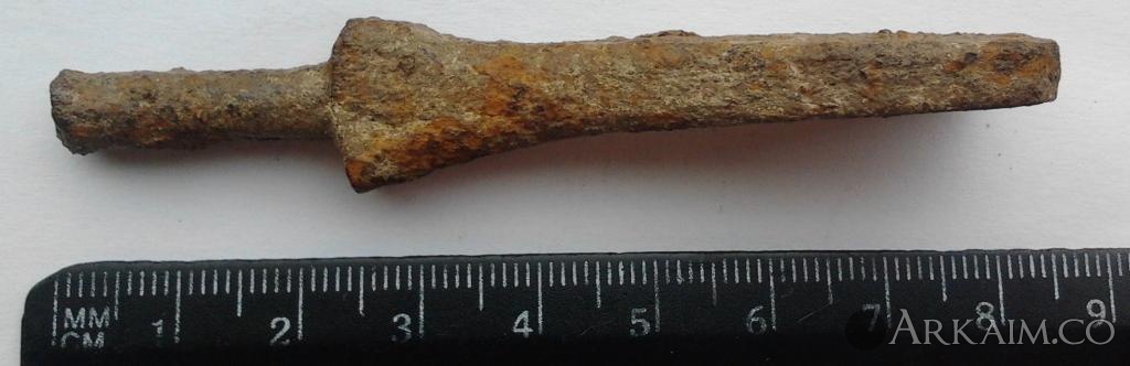 10. На арбалетный не похож. Добавлю что "боевая"часть тупая и заточки не наблюдается. Толщина металла в самом тонком месте 4мм.диаметр черешка 7мм.