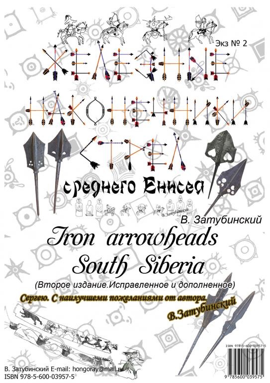 «Железные наконечники стрел Среднего Енисея» ISBN 978-5-600-03957-5 Монография рассматривает появление и развитие железных наконечников стрел в Южной Сибири, с 2-го века до н.э до позднего средневековья 14-16 вв.н.э. Данный фотообзор будет полезен историкам, археологам и просто интересующимся историческим оружием, увлечённым исследователям в качестве подспорья в археологическом вещеведении. Эл.книга. PDF. 216 MB. 575 стр. Более 1000 информативных фото железных наконечников, с размерами и весом. Цена: 300 руб( карта СБ). PDF-файл пересылается по E-mail. У каждого покупателя будет свой номерной , цифровой экземпляр с именной надписью на титульной странице и скрытыми экземплярными номерами.