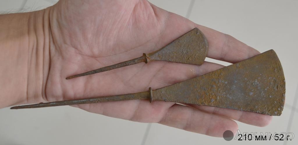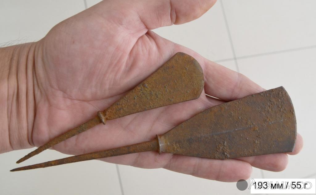 Доспешные пластины любопытной формы.Вероятно погребальная кремация веков 10-12. . "Краска" это окалина от высокой температуры