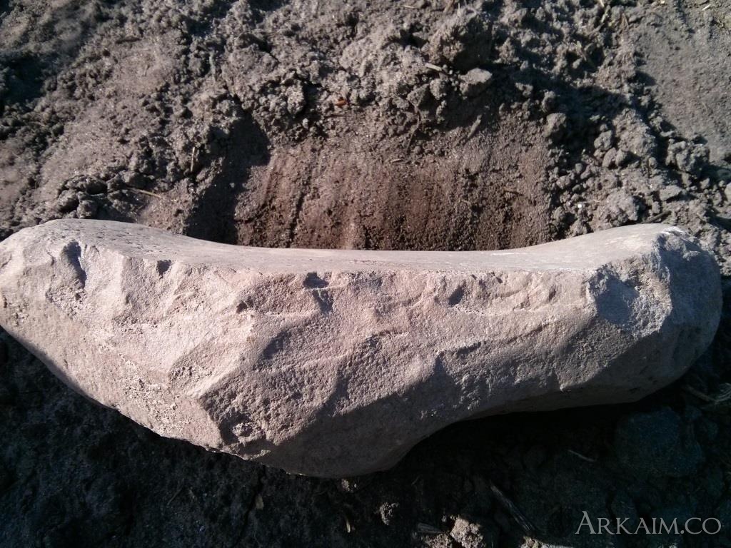 Добрый день, нашёл на поле камушек, одна сторона гладенькая и вогнутая, похоже на зернотёрку. В сопутке советский мусор и немного керамики Благодарю