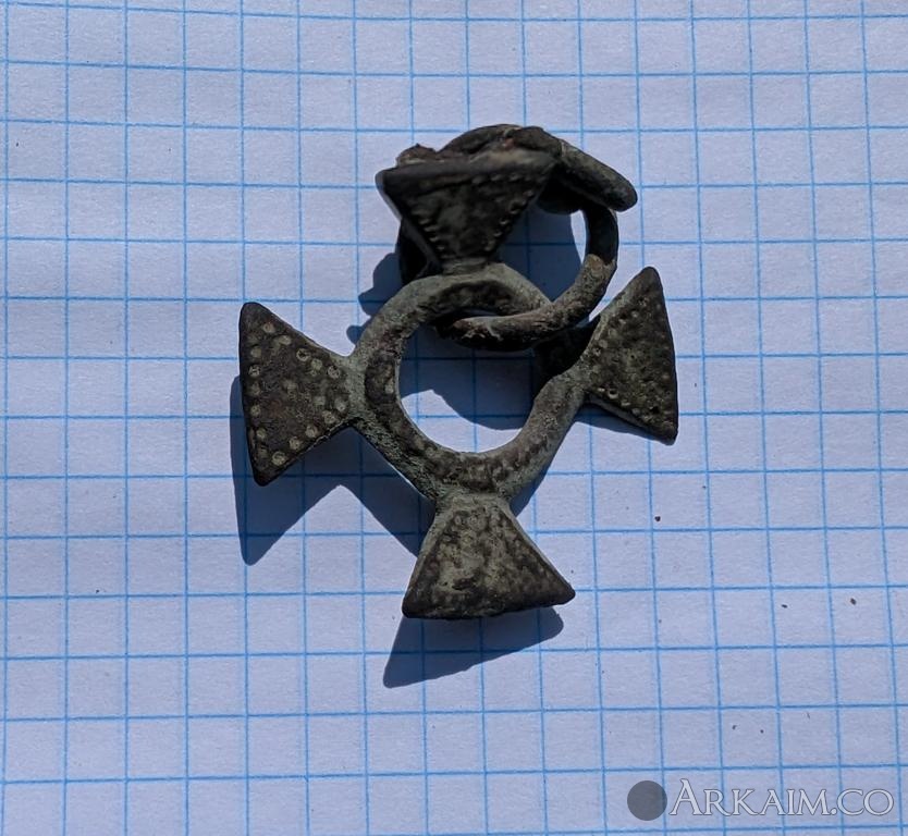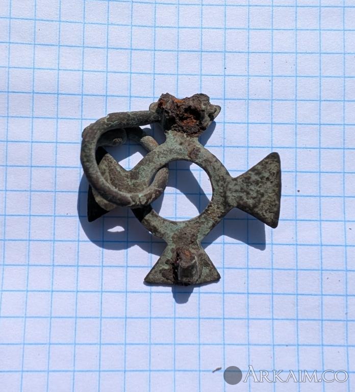 Здравия Всем уважаемые форумчане ! Попалась серебряная накладка для Харьковской обл. не частая находка, но к сожалению с утратой .Вес 8 гр. размер 3..5 на 3.5 см . Думаю пеньки .Похожие формы встречаются у кочевников .Скоректируйте чиих бутет .?
