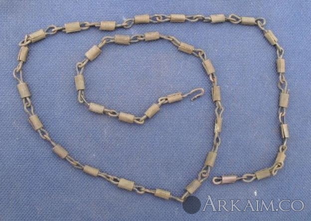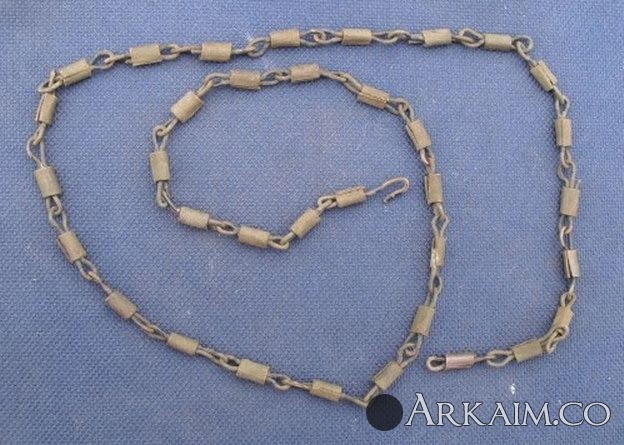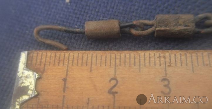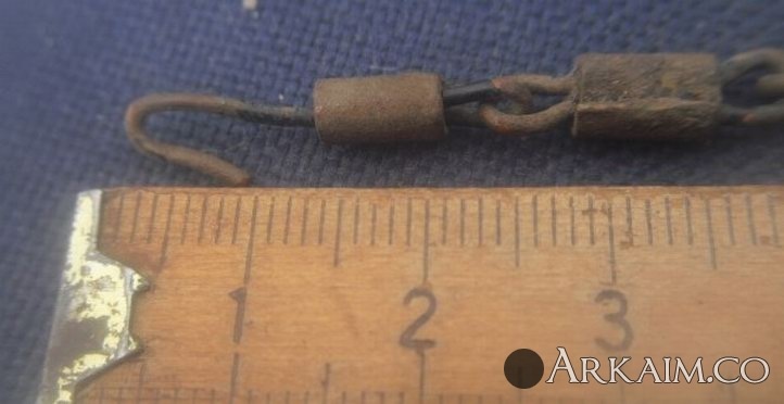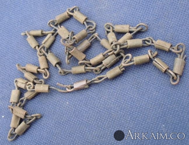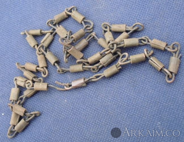 14. Здравствуйте. Попалась на днях в лесу цепочка. Сразу подумал "гибкий шомпол", кинул в воду откисать. А сегодня посмотрел, грязь отпала и видно, что она медная, да еще и остатками черной краски. Может кто знает, каких годов цепочка? Длинна примерно 65,5 см. Заранее благодарен. С ув.