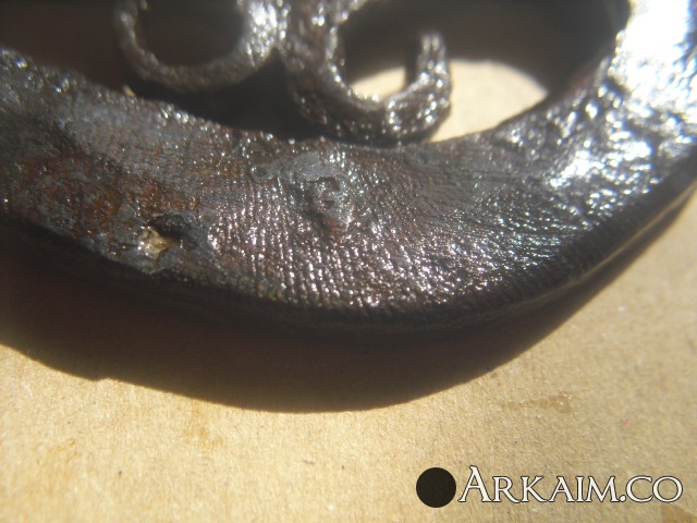 Толщина около 4мм, для кресала в самый раз. Только вот не пойму почему насечки сбоку, они ж должны снизу (на узкой ) части быть.