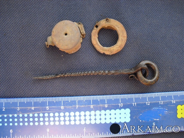 Спасибо. Медные и бронзовые тоже думаю что булавки. По хазарах находил, железные, длинной см15 и толщиной около 1см, до половины крученные и острые как шило. Те были ровные, спрашивал на Домонголе - сказали булавки, а на Виолити - вилки козацкие. А та, что вверху на фото, небольшая и тоненькая, всегда вот такие идут с бронзовым (медным) кольцом и гнутые. Древние люди были отнють не глупые и очень практичные, думаю это инструмент "на все случаи жизни", всей правды не узнать, можно только предполагать. Выставил на продажу, никак не назвал, просто "Козацкие потеряшки".