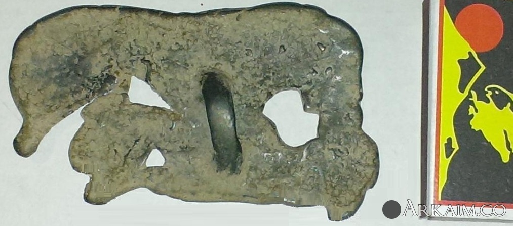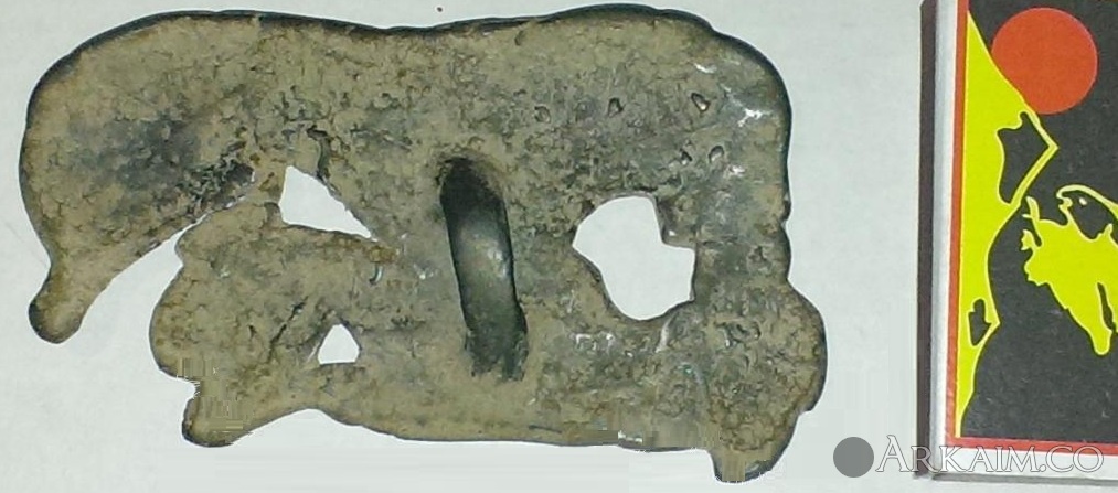 Доброго дня! Прошу помочь с атрибуцией такого предмета. Со слов, находка Краснодарский край. Сопутка - наслоенка разных эпох. Длина 33 мм, высота 32, диаметр отверстия 4,5 мм. Техника изготовления - как слепили, причем следы параллельных полос, словно от плоскогубцев. Так на Кобань похожа, но у них собаки в другом стиле.