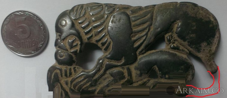 Доброго дня! Прошу знающих высказаться, данная вещь целая или с утратами. На картинке дорисовал хвост. Но, может быть, там лапа была? Судя по монеткам/спичкам, с территории Украины находка. Спасибо!
