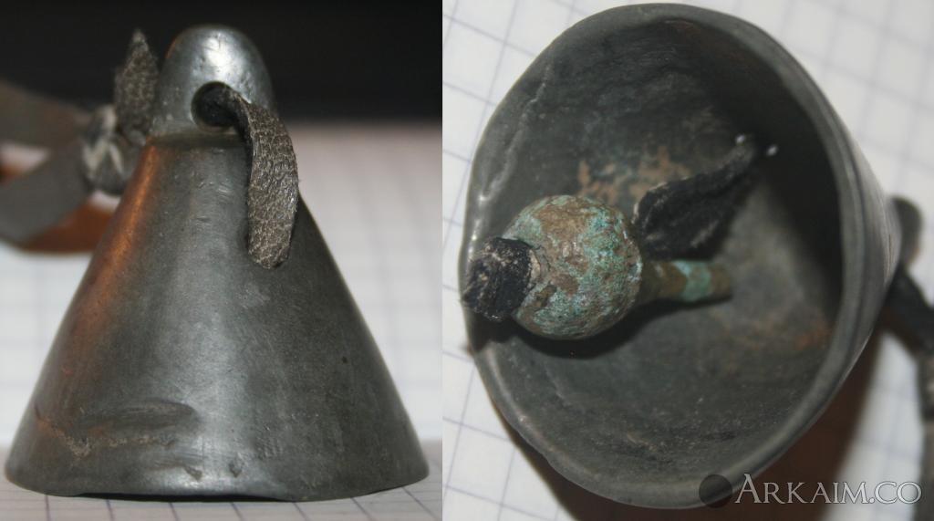 Прошу помочь в определении периода и народности мелких находок. Все Северный Кавказ. 1. Колокольчик, диаметр 37 мм, высота 40 мм, ушко 3 мм.