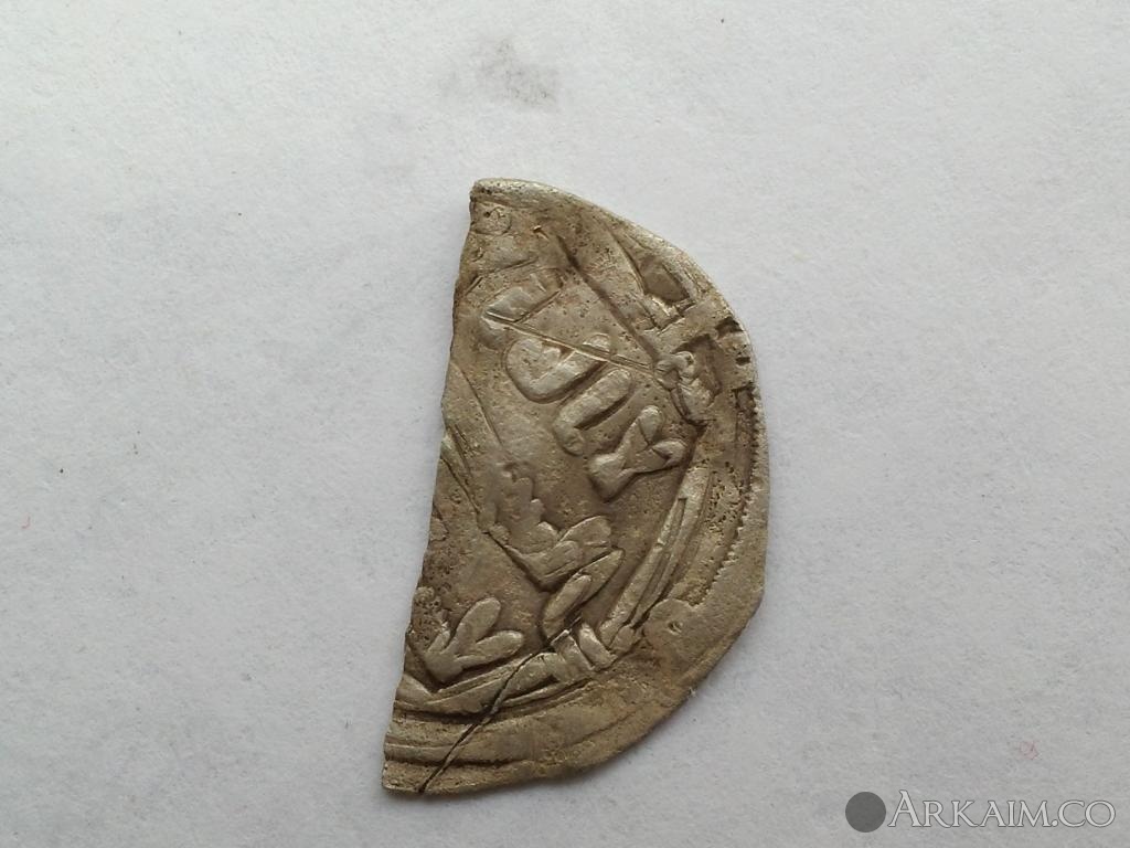 Вроде Аббасидский дирхем 10 век., это не определяющая половаинка, инфа на иной осталась. Тут только вижу монетный двор: Мединат Бухара