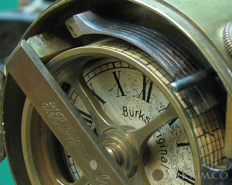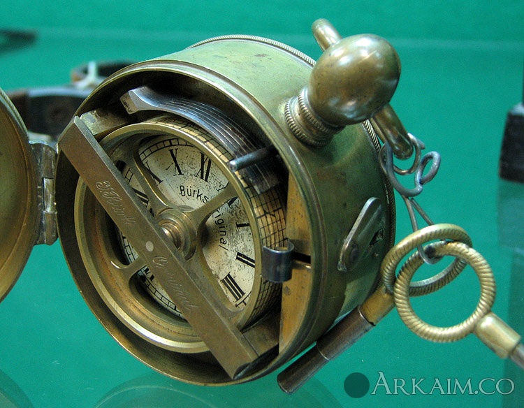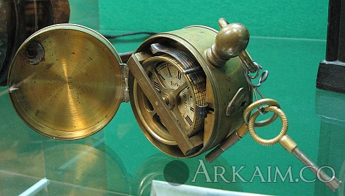 Yorik Опубликовано 26 июля, 2014 Опубликовано 26 июля, 2014 Итак - перед вами замечательный, как говорится, девайс! Что же это такое? Сейчас объясню! К разным регистраторам, рекордерам и прочим всяким накопителям информации я питаю особые чувства. И, разумеется, мимо такого устройства пройти просто не мог! Итак, механизм на фото - это так называемые "часы для контроля ночных сторожей". По-английски - night watchman's clock, или, проще, watchman clock, по-немецки - Nachtwächter Kontrolluhr. Идея проста - ночные сторожа обязаны обходить вверенную им территорию, а не спать в сторожке. Для этого их нужно стимулировать и контролировать. :-) Так вот, идея состоит в том, чтобы снабдить сторожа регистратором с часовым механизмом, а в определенных точках маршрута обхода расположить ключи-метки, до которых сторож обязан дойти и "отметиться", что он в этих "контрольных точках" побывал в установленное время. Для этой цели и служат watchman clock - фактически, разновидность т.н. табельных часов. На фото - один из нескольких представленных в Политехническом музее подобных механизмов, который мне кажется самым интересным: Дело в том, что эти часы изготовлены фиромой Йоханнеса Бурка (Burk, Johannes), который, собственно, и разработал в середине XIX века этот регистрирующий механизм. Интересно заметить, что watchman clock этого типа выпускались с незначительными изменениями почти 70 лет, вплоть до 20-х годов XX века... Как же всё это работает? Посмотрим ещё ближе: Часовой механизм расположен в прочном медном корпусе, и не имеет стрелок. Вместо часовой стрелки на оси механизма - барабан. На него надевается колечко из графлёной бумажной ленты. Над барабаном - блок из шести пружин с острыми зубцами. Начальник караульной службы выдает ночному сторожу перед заступлением на пост такие часы, заведённые, выставленные на точное время и снаряжённые "свежим" бумажным кольцом. Крышка часов, разумеется, закрыта. Сторож делает обход территории, и несет с собой часы. Они идут - барабан медленно вращается. Когда сторож доходит до очередной "контрольной точки" - он берет пристегнутый цепочкой в этом месте ключ, вставляет его в скважину в крышке и проворачивает. При этом ключ выступом своей бородки прижимает определенную пружину-резец к бумажной полоске - и на бумаге остается метка! В разных контрольных точках висят разные ключи - таким образом, утром достаточно снять бумажную полоску и проверить, есть ли на ней метки всех контрольных точек, и в положенное ли время они поставлены. Вот такой учёт и контроль! %) В Сети я нашел упоминание о том, что изначально фирма Бурка стандартно выпускала часы для шести "станций"-контрольных точек. Тоесть ключ имел только один выступ на бородке. Однако позже были сделаны модификации для 12 и 18 "станций" - видимо, тут уже использовались ключи с несколькими выступами. И тут возникнет, конечно, логичный вопрос - а что мешает хитрому сторожу открыть крышку и передвинуть барабан, обманув тем самым регистратор? Этот момент тоже учтён. На последнем снимке прямо в правом нижнем углу видна часть пружины, фиксирующей закрытую крышку. Если присмотреться - можно заметить, что она также снабжена острием, которое оставляет на бумажном кольце отметку! Так что открыть крышку незаметно тоже не выйдет... :-) В завершение надо заметить, что подобные контрольные часы до сих пор успешно применяются! Сменилась, правда "технологическая ба