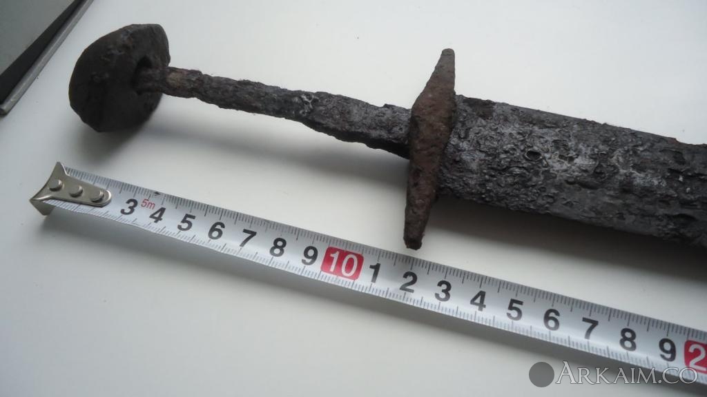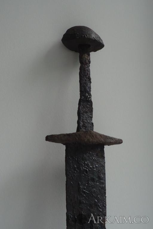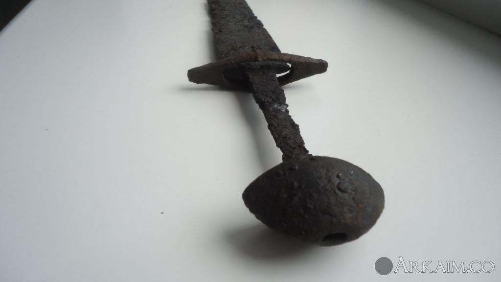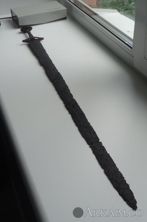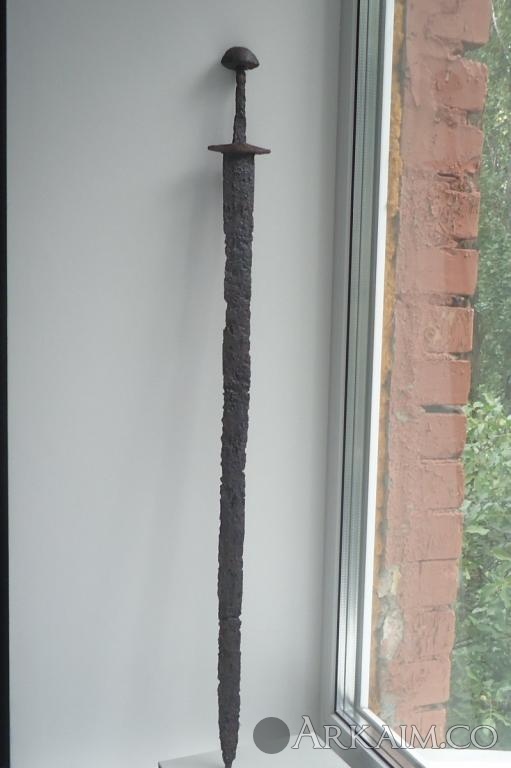 Чудесное превращение меча 3-5 в.в. кочевников (сарматы, гунны) в меч типа скандинавский. Внимательно посмотрите отверстие в гарде для хвостовика. круглое, как вход в беличье дупло. Эпоксидкой залили хотя бы. Совсем распоясались рукодельники.