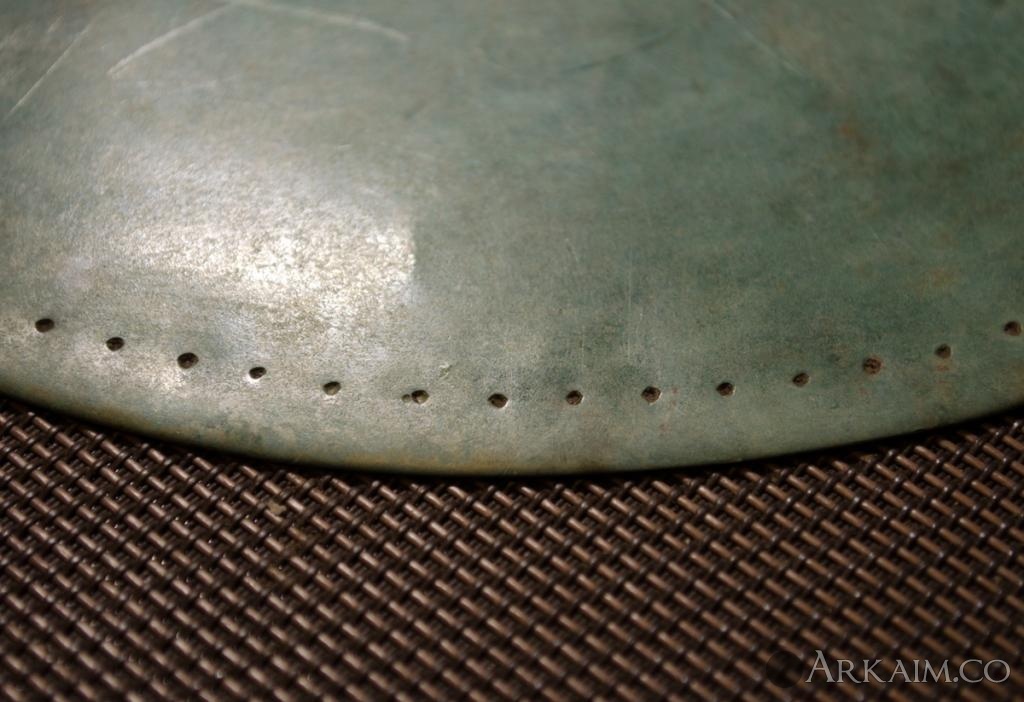 Valja Опубликовано 22 августа, 2014 Опубликовано 22 августа, 2014 Попалась часть бронзового диска ф 23 см. Материал бронза,край украшен набитыми точками,имеет слабую вогнутость (край утолщён). След видимо припайки чего-то,пробитые отверстия для скрепления с другими частями. В трёх метрах был скифский топор 550 грамм.