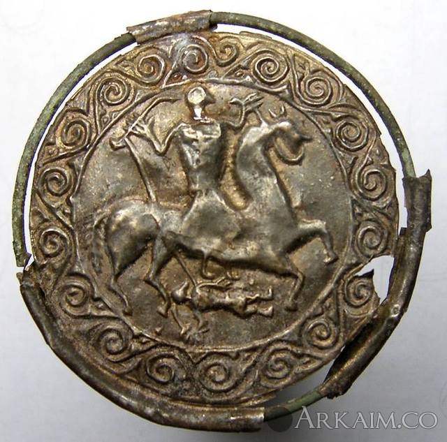 Yorik Опубликовано 30 июня, 2015 Опубликовано 30 июня, 2015 Волжская Булгария - X-XII вв. Украшение и амулет мужского наряда - серебряная бляха со сценой пленения всадником вражеского воина.