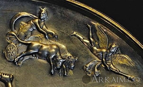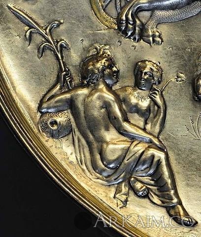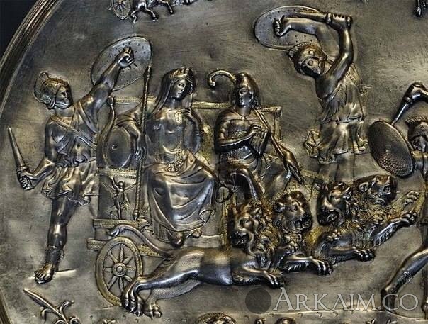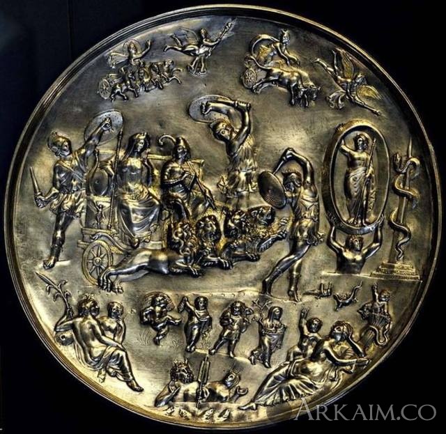 Yorik Опубликовано 13 июля, 2015 Опубликовано 13 июля, 2015 Патера из Парабьяго. Серебро со следами позолоты. 2-я пол. IV в. н. э. Диаметр 39 см, вес 350 г, глубина 5,1—5,4 см, диаметр донца 15,8 см. Инв. № A0.9.14264. Милан, Городской археологический музей. Происхождение: Обнаружена в 1907 г. в Парабьяго. Служила крышкой погребальной урны. Описание: Обнаруженная в 1907 г. в ходе строительных работ в Парабьяго близ Милана, патера напоминает по форме большие блюда, использовавшиеся в священных церемониях очищения перед алтарями, однако сложная композиция, посвященная триумфу Кибелы и Аттиса, на котором присутствуют боги времени, неба и природы, придает патере исключительность и особую символическую ценность. Смысл сцены, безусловно, космологический и религиозно-философский: она является своего рода гимном вечному циклическому обновлению жизни и процветания, персонифицированным в образах Кибелы и Аттиса. Столь определенный выбор сюжета позволяет интерпретировать патеру как идеологический манифест, который полностью соответствует культурному фону второй половины IV в., когда определенные интеллектуальные круги внутри правящего класса, особенно прочно связанные с ценностями классической культуры, пытались реставрировать языческие культы, сопротивляясь враждебной им христианской культуре и политике. Эта тенденция достигла наивысшей точки при императоре Юлиане (360—363 гг. н. э.), прозванном христианскими авторами Апостатом (отступником, предателем). Известный в Риме с III в. до н. э., восточный культ богини Кибелы, Великой Матери Фригии или Идеи (по имени горы в азиатском регионе), персонификации природы и размножения, повелительницы растительного и животного мира, был официально признан в I в. н. э. при императоре Клавдии. Со второй половины II в. он приобрел большое значение. Многие его приверженцы относились к высшим классам общества, а его эзотерические, инициационные и очистительные аспекты перекликались с культом Митры. Праздничный цикл Кибелы имел все типичные признаки весеннего праздника возрождения природы; он начинался 15 марта, в первый день года по архаическому римскому календарю, празднованием смерти и возрождения Аттиса. В Риме к первому храму на Палатине, посвященному богине, между III и IV вв. н. э. добавился еще один — на Ватиканском холме, неподалеку от могилы св. Петра, в святая святых христианства. Здесь приверженцы культа проходили инициацию-тауроболию, нечто вроде «крещения», олицетворявшую возрождение через кровь жертвенного быка. Во второй половине IV в. н. э. среди приверженцев культа Кибелы было немало представителей сенатской аристократии, впитавшей в себя неоплатоническую философскую культуру, открыто противостоявших христианизации и близких к императорскому двору. Главным защитником культа Кибелы явился император Юлиан, автор речи «Гимн Матери богов», а в конце века его поборником выступил узурпатор Евгений. В окружении одного из этих императоров и следует искать заказчика патеры из Парабьяго. Существование культа Кибелы в Милане подтверждается по крайней мере пятью надписями, в которых упоминаются два жреца, попечитель храма и ритуальные общества, такие как дендрофоры. Существует также средневековый рельеф с изображением процессии во славу святого образа Мадонны, названной «Идеей», который был обнаружен между разрушенной цер