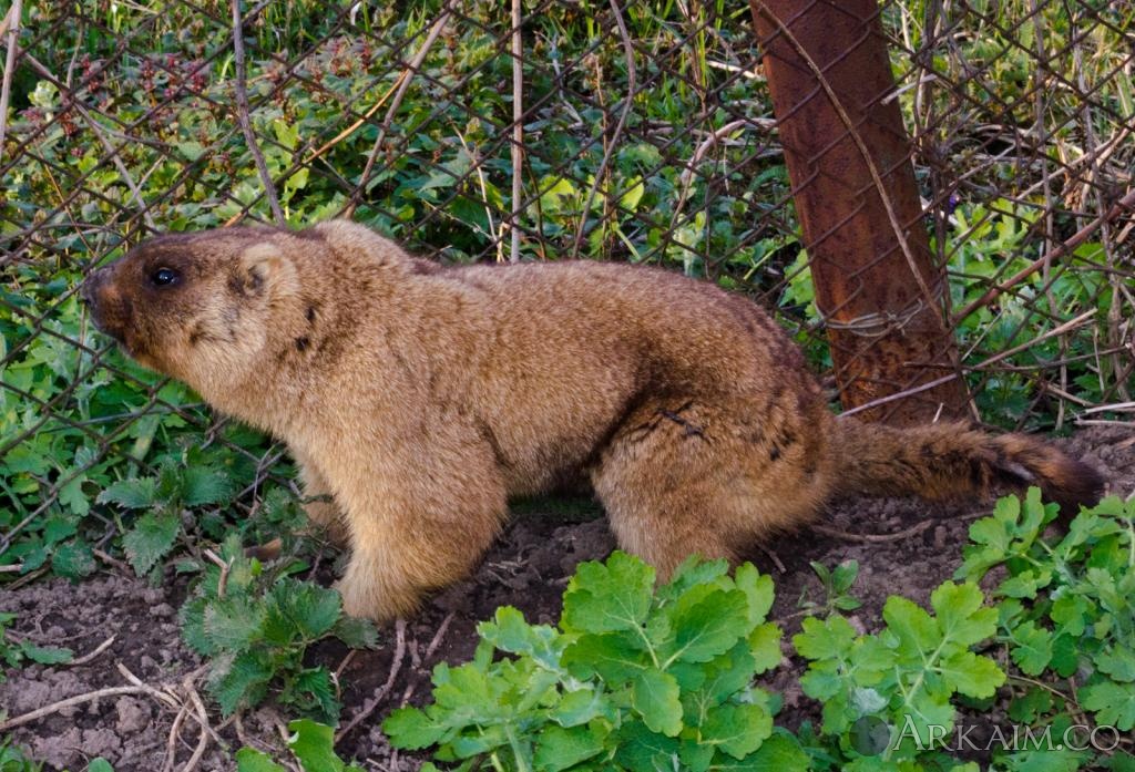 Valja Опубликовано 17 апреля, 2014 Автор Опубликовано 17 апреля, 2014 Только что услышал странные звуки за летней кухней,и обнаружил что прибился байбак. Забился в хламе и свистит. Еле освободили его,а он бегает по над рабицей,выхода не найдёт. Час его направляли на выход. Оказался фотогеничным. Правда при приближении цокал ритмично зубами.