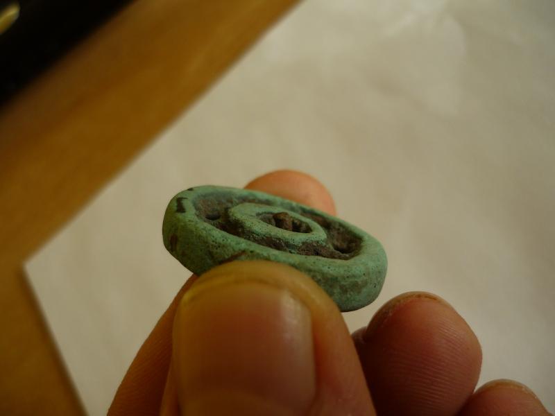 Амулет был найден с 5-палой фибулой антов с остатками кожаной ленты. Фото до мойки и после промывки в воде зубной щёткой. Место находки тоже.