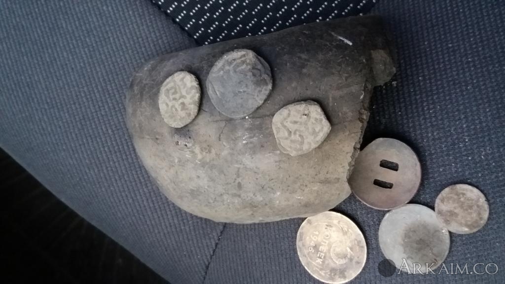 Кусок горшка и три монеты