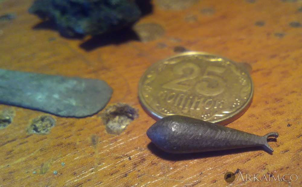 Это не гламурная переточка посмотрите наконечник как бы притуплен и подтёрт походу носили как амулет долгое время ,поясок этот для обоймицы что бы её покрепче закрепить это Перунова стрела амулет с утратой обоймицы :)