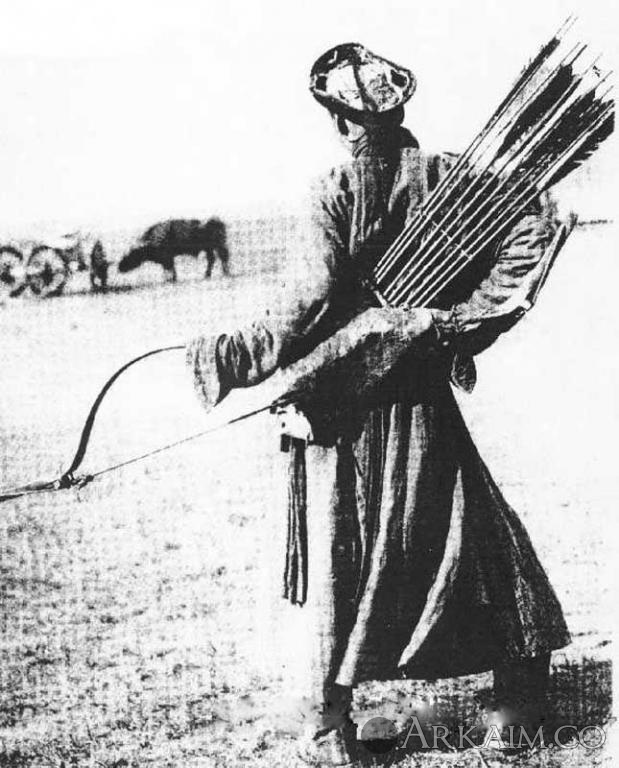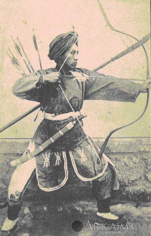 При этом голова держится прямо, а верхний рог лука немного склонен налево. Этот метод Абу Хашима аль Маварди, а также персидских лучников и царей, был, по словам автора арабского наставления, древним и универсальным приемом точного прицеливания, которого придерживался и он сам”.