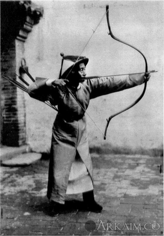 Автор рекомендует всем лучникам владеть всеми способами натяжения тетивы и менять их, когда устают пальцы. Далее он сообщает, что тетиву можно тянуть к уху, к шее или к груди. Как мы видим, даже в одной стране и в одну эпоху существовало множество способов стрельбы.