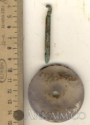 Добрый Вечер! Возник у меня с товарищем спор.По мне предмет рядом с бусиной post-5-0-89919200-1489688926_thumb.jpgpost-5-0-78194900-1489688959_thumb.jpgpost-5-0-92482500-1489688991_thumb.jpgпросто красивое и не частое пряслице.Скорее всего скифского периода.Но знакомый утверждает что это очень редкий предмет.Навершие(возможно как то по другому называется) рукояти аланского меча. Хочеться услышать мнения специалистов.Заранее Спасибо за все ответы!