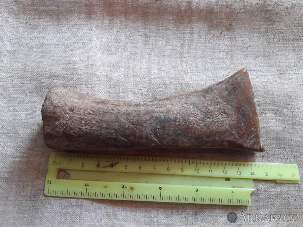 dronav Опубликовано 2 июля, 2019 Опубликовано 2 июля, 2019 Доброе время суток! Сегодня озадачили меня таким вот изделием, а именно: Костяной топор. (см. фото) К сожалению, сопроводительной информации никакой. Зверь тоже неизвестен. Нахождение изделия Белгородская область. Честно, впервые встречаю подобные вещи. Ножи с наконечниками встречал, но что бы топор, это уже что то....... От себя: немного смущает его функциональный вес и прямоугольная втулка. В остальном, форма/стиль вроде древнючий. Коллеги, может у кого-нить есть какие-нить мысли по...? Мне очень интересно услышать Ваши мнения.