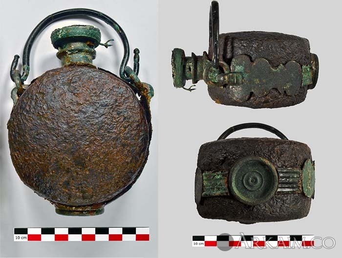 Yorik Опубликовано 12 апреля, 2020 Опубликовано 12 апреля, 2020 Металлическая фляга легионера была найдена в удивительно отличном состоянии на месте древнего римского святилища на юго-востоке Франции. Археологи из Национального института превентивных археологических исследований (INRAP) занимались раскопками этого места перед запланированными строительными работами. В ходе раскопок и был обнаружен участок святилища. Согласно полученным данным, на этом месте находилось два или три небольших храма и 42 ямы, в которых некогда находились религиозные жертвоприношения. До настоящего времени сохранились только каменные основания сооружений, но для двух из них можно четко понять план храма. От третьего же здания сохранился только небольшой участок стены и два крыла. Археологи предполагают, что это тоже мог быть храм, но слишком мало его фрагментов осталось, чтобы подтвердить это. Сложно однозначно датировать и само святилище. Котлован, окружающий участок, возможно, является первым этапом строительства и он датируется первой половиной I-го века. В южной части святилища была найдена керамика, относящаяся к периоду с конца I-го до начала II-го веков. Некоторые ямы были датированы первой половиной IV-го века. 41 из 42 ям сгруппированы в три группы по 13, 14 и 14. Они достаточно сильно отличаются по размеру: самая большая из них имеет ширину около двух метров, а самая маленькая не достигает и полуметра. Внутри некоторых из них были найдены богатые предметы интерьера, в том числе монеты, керамика и статуэтки. В одной из них и была найдена эта фляга. Фляга, изготовленная из сплава меди и железа, входила в стандартную экипировку римского легионера. Она состоит из двух круглых железных оболочек, которые между собой соединены с помощью медных плоских кронштейнов. К петлям в верхней их части прикреплена ручка, также изготовленная из медного сплава. Сохранилась и пробка из меди, которая была связана с самим сосудом бронзовой проволокой, от которой также сохранился небольшой фрагмент. Основание не повреждено всеми крепежными элементами, которые опрессовывают колбу. Оно украшено концентрическими кругами, схожими с теми, которые часто можно увидеть на ножках металлических ваз. Примечательно, что это всего лишь одна из трех подобных фляг, когда-либо обнаруженных в Галлии. Отмечается, что на фляге был замок, что предполагает ее использование для того, чтобы нести что-то более значимое, чем вода или масло, которые легионеры обычно брали с собой в походах. Ученые смогли выделить и находящиеся в ней остатки биологических материалов. Органический анализ показал, что это было в основном просо, смешанное с небольшими количествами ежевики и молочных продуктов. Есть также следы хвойной смолы. Присутствует и другое растение, очень богатое олеаноловой кислотой и 3-O-ацетилолеанолом, но более точная его идентификация невозможна. Все ингредиенты были нагреты или приготовлены вместе, вероятно, представляя собой какое-то блюдо. А учитывая контекст нахождения ее в яме святилища, содержимое могло означать религиозный жест, такой, как жертва пищи. https://planet-today.ru/novosti/nauka/item/120861-netronutaya-flyaga-legionera-najdena-v-rimskom-svyatilishche-vo-frantsii?utm_source=yxnews&utm_medium=desktop&utm_referrer=https%3A%2F%2Fyandex.ru%2Fnews
