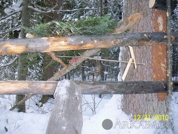 brodnik Опубликовано 11 августа, 2020 Автор Опубликовано 11 августа, 2020 Вот хоть убей, рисунок рисовал тупой дуболом, Внимательно посмотрите на массу бревна и крепление приманки. Это надо - ж как рвануть ее (приманку) и качнуть бревно, чтобы сторожок вылетел? У меня мыши и крысы в лесу из тщательно настороженной мышеловки аккуратно съедают приманку. Рисовал человек далекий от охоты в дикой природе. Вот правильно, - для верхнего бревна направляющие боковые упоры, иначе вероятность правильного падения мала (как на рисунке). И приманка крепиться к сторожку, а не на гвоздике вбитом в бревно сбоку: dronav, интернет общеизвестная помойка,приводите корректные рисунки.