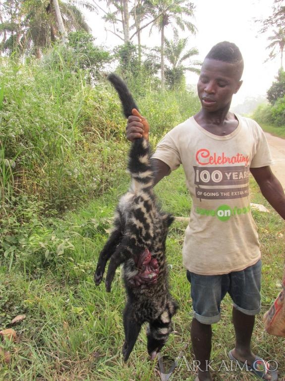 brodnik Опубликовано 10 августа, 2020 Опубликовано 10 августа, 2020 Жду вылета, как тот чукча рассвет, время есть и прочитав темы форума, понял, что в отличие от рыбалки тема охоты на зверя отсутствует. Начну. В тропической Африке народ несколько ленив, что бы с ружьем шастать по лесу и делают всякие приспособы для ловли снедных (по Сабанеев) зверей. Вот и сьералеонцы тоже используют различные ловушки для ловли зверей. Вот для обезьян (зеленая мартышка). Идет по перильцу из ствола дерева к банану и ...... поближе, там видно петлю из тросика Для циветты делают на земле, но принцип тот же: Вот и долгожданная добыча, циветта (местные кличут "бушкат") : И тех и других я не ел