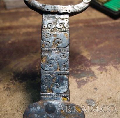 Yorik Опубликовано 5 октября, 2020 Автор Опубликовано 5 октября, 2020 valja valja писал(а): "Кто бы мог подумать что акинак с такой богато украшенной рукоятью будет иметь простенькое антенное нашершие ? Ан,нет,ошибаетесь. Вот какая красота началась открываться на навершии. Тут я под микроскопом с расчисткой и прилип на одном месте." Придётся ещё разгадывать штрихи и линии у основания навершия. Есть сходства с римскими цифрами. И сюжет кажется повторяет основную идею мастера - головки грифонов. Рельеф оказался довольно объёмным и не простой работой древлян.