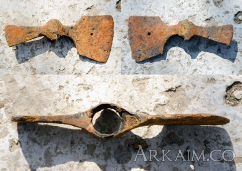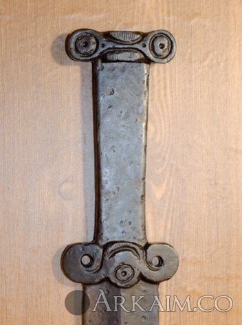 Yorik Опубликовано 9 октября, 2020 Автор Опубликовано 9 октября, 2020 valja Скифский меч украшенный в зооморфном стиле верхнего и нижнего навершия. Состояние найденного меча. В процессе расчистки после вымачивания нужно было разобраться с нанесёнными скифскими рисунками. Они двояко расшифровывались. Бык, горный баран с закрученными рогами или лось. Вот фото промежуточное расчищенной рукоятьи с навершиями. Тем летом предоставилась возможность показать его в украинско-немецкой археологической экспедиции ведущим специалистам. Совместно пришли к выводу что на гарде изображен лось.А на окончании всё же видимо глаза грифона. Этот тип акинака с пробитыми насквозь отверстиями в гарде вообще является неописанным. Стоит ещё учесть кривизну лезвия клинка.
