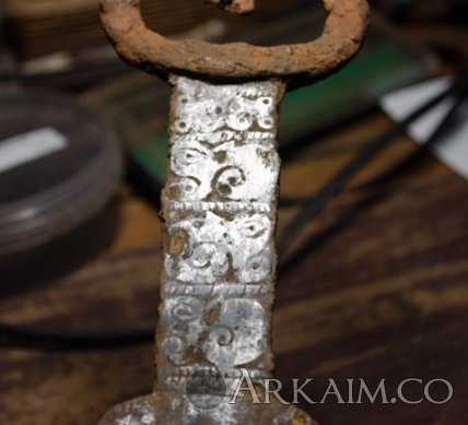 Yorik Опубликовано 5 октября, 2020 Автор Опубликовано 5 октября, 2020 valja Кто бы мог подумать что акинак с такой богато украшенной рукоятью будет иметь простенькое антенное нашершие ? Ан,нет,ошибаетесь. Вот какая красота началась открываться на навершии. Тут я под микроскопом с расчисткой и прилип на одном месте. Придётся ещё разгадывать штрихи и линии у основания навершия. Есть сходства с римскими цифрами. И сюжет кажется повторяет основную идею мастера - головки грифонов.