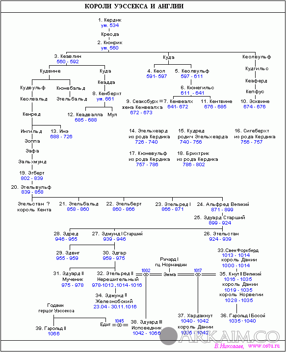Yorik Опубликовано 15 марта, 2017 Автор Опубликовано 15 марта, 2017 Генеалогия королей Уэссекса по В. Николаеву