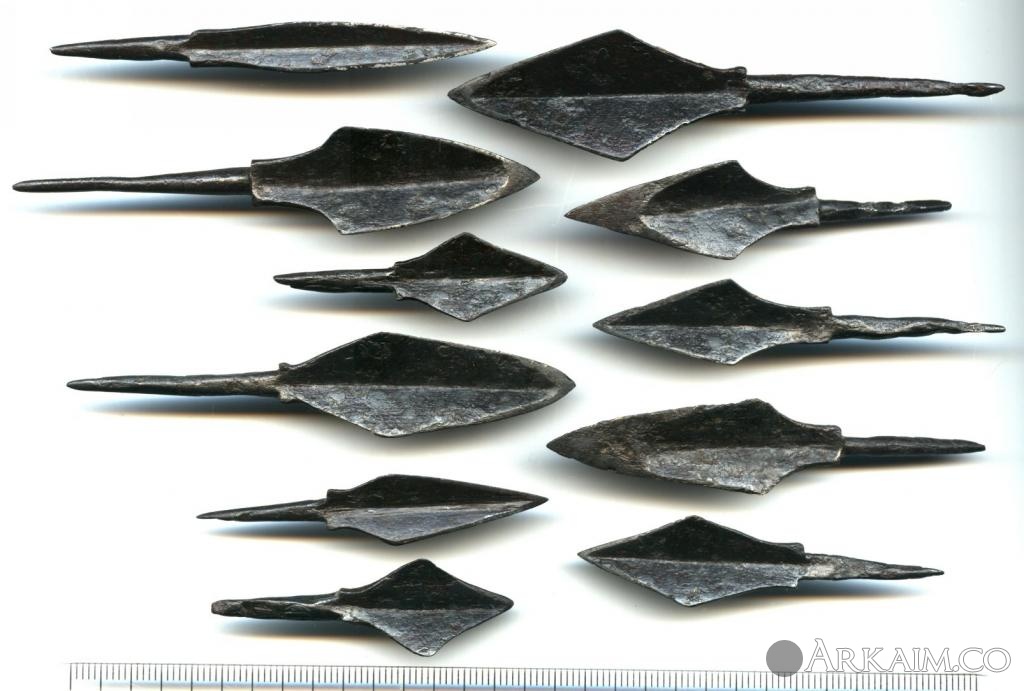 ДШК Опубликовано 3 июля, 2013 Автор Опубликовано 3 июля, 2013 Итак традиционная конференция, не смотря на трудности в ее организации (дефицит времени, извиняемся), состоялась. Обсуждались редкие типы бронзовых и биметаллических наконечников, представленных ув. Йориком, был подтвержден "балканский след" моего двушипного, интерес вызвали и наконечники гуннского периода, поднятые на ограниченной территории степи юго-запада Крыма. Думаю Юрий покажет красоту, я с вашего позволения немного остановлюсь на трехлопастниках. К сожалению большинство наконечников этого типа плохо сохраняются до наших дней, зачастую буквально рассыпаются в руках после извлечения из грунта, среди таких были и редкие, более не встречаемые типы. Сильно осерчал, когда развалился нак с расширением в верхней трети, был и треугольный с небольшим усечением лопастей в их нижней части. Локальная подборка представляет интерес еще и тем, что позволяет проследить эволюцию их изменения от ранних к более поздним, а места находок, исходя из рельефа местности, помогают понять цель применения оружия, к сожалению в большинстве случаев против людей. На скане несколько наконечников из числа обсуждаемых. Не обошлось и без подарка, великолепное долото, Юра, спасибо!