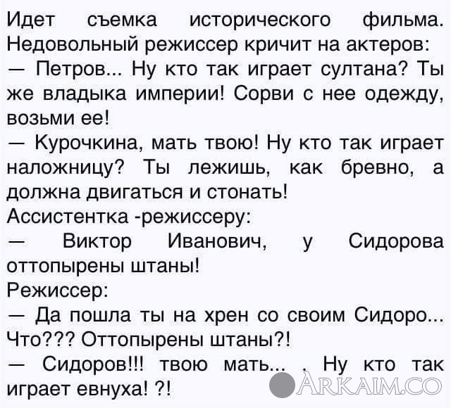 Yorik Опубликовано 23 августа, 2019 Автор Опубликовано 23 августа, 2019 - Идите в ж@пу, Александр! - За такие слова персы нехило огребли в 4 веке до н.э!