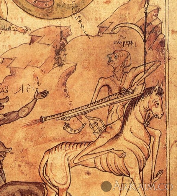Yorik Опубликовано 15 ноября, 2019 Автор Опубликовано 15 ноября, 2019 Русская Смерть с огнестрелом, Геннадьевская Библия, 1499 год . Уникальная иллюстрация к Откровению Иоанна Богослова, изображающая четвертого всадника Апокалипсиса.