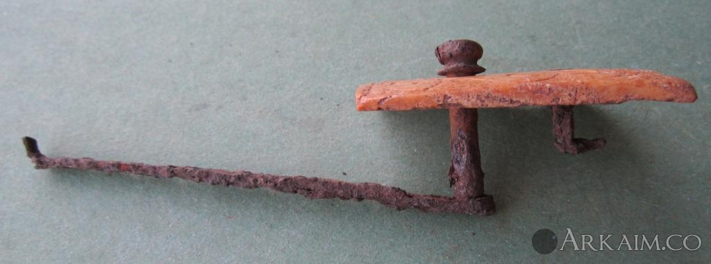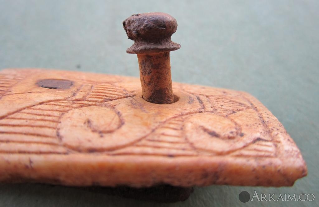 Явно аналогичная костяная пластинка- и по форме , и крепежу, и рисунку.